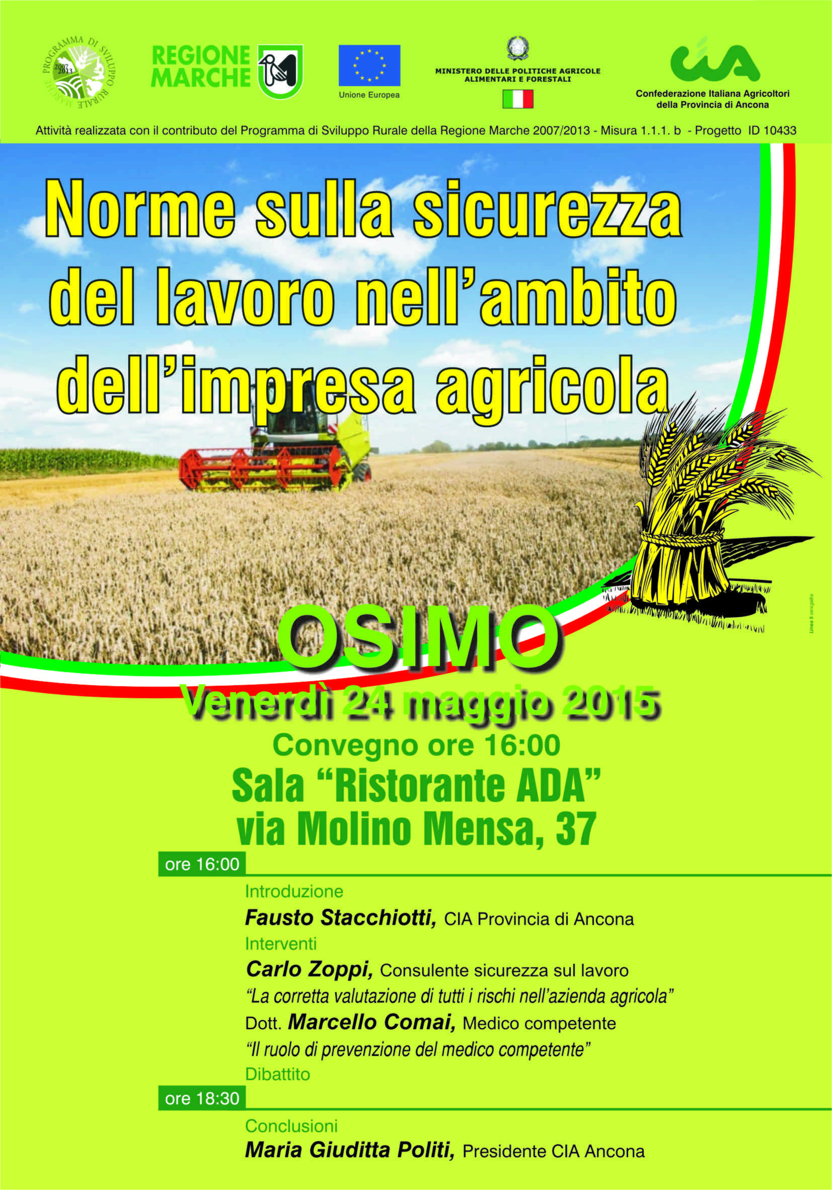Navigazione articoli Seminario: Sicurezza e presidi chimici in agricoltura, 13 maggio 2015 a Tolentino.INAIL, Ruolo Fondamentale nella Prevenzione degli Infortuni e Malattie Professionalizzate