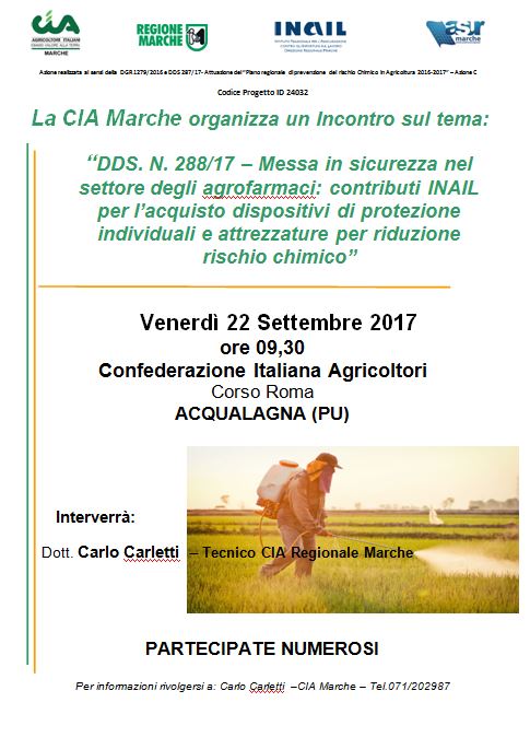 Navigazione articoli Incontro INAIL: Sicurezza Agrofarmaci, contributi per dispositivi di protezioneAgrofarmaci: Sicurezza nel Settore, incontro a Ortezzano (FM)