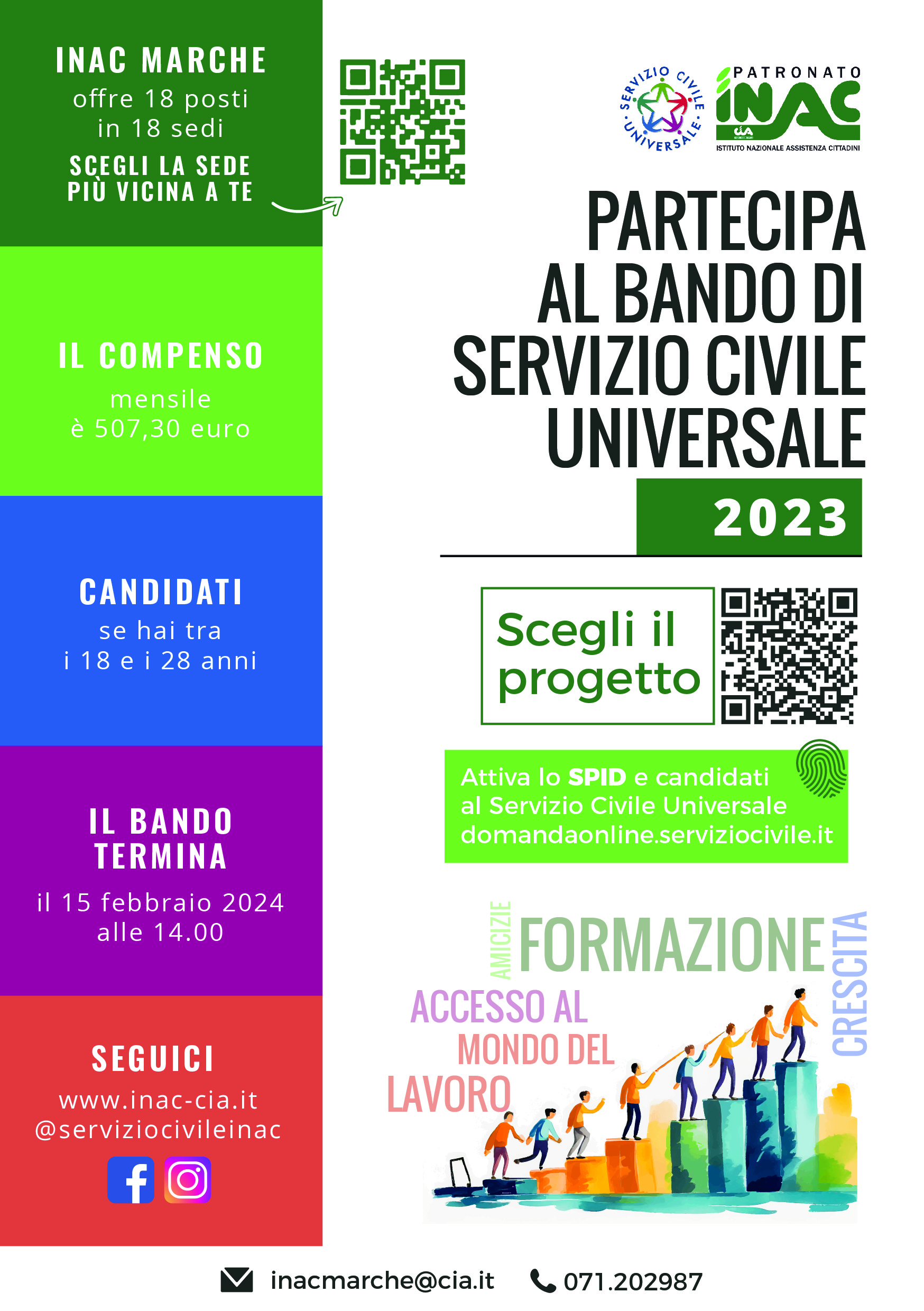Per maggiori informazioni, rivolgiti alle sedi INAC interessate dal bando vicino a te, oppure scrivi a serviziocivile@inac-cia.it .